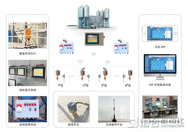 河南潛合自動化科技有限公司為了保障了混凝土攪拌站在上料過程中更加的精確,防止由于工人的疏忽造成不可逆轉的損失,設計了料倉安全系統(tǒng)。該系統(tǒng)以磅房為中心,集上料倉分配、上料閥門控制、料位阻旋報警、料位計報警、上料前上空值顯示、電子物料標識牌為一體,徹底省去“兩把鎖”,從管理上根除“打錯料”失誤,實現了減少混凝土攪拌站產生人為的損失,符合組建綠色生產規(guī)程的需求。