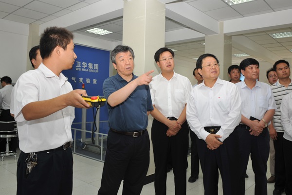 衛(wèi)華集團(tuán)董事長、總裁韓憲保陪同盧展工一行參觀了集團(tuán)技術(shù)檢驗測試中心和和電器實驗室。在電器實驗室,盧展工饒有興趣地觀看了智能門式起重機(jī)、遠(yuǎn)程控制系統(tǒng)和帶載模型演示實驗,并詳細(xì)詢問了我集團(tuán)產(chǎn)品的技術(shù)水平、應(yīng)用領(lǐng)域和市場情況。盧展工說,起重機(jī)最核心的是自動控制部分,你們的產(chǎn)品在國內(nèi)具有地域優(yōu)勢和價格優(yōu)勢,要把握好這些有利條件,繼續(xù)加強(qiáng)研發(fā),掌握核心技術(shù),才能有持續(xù)發(fā)展的動力。
